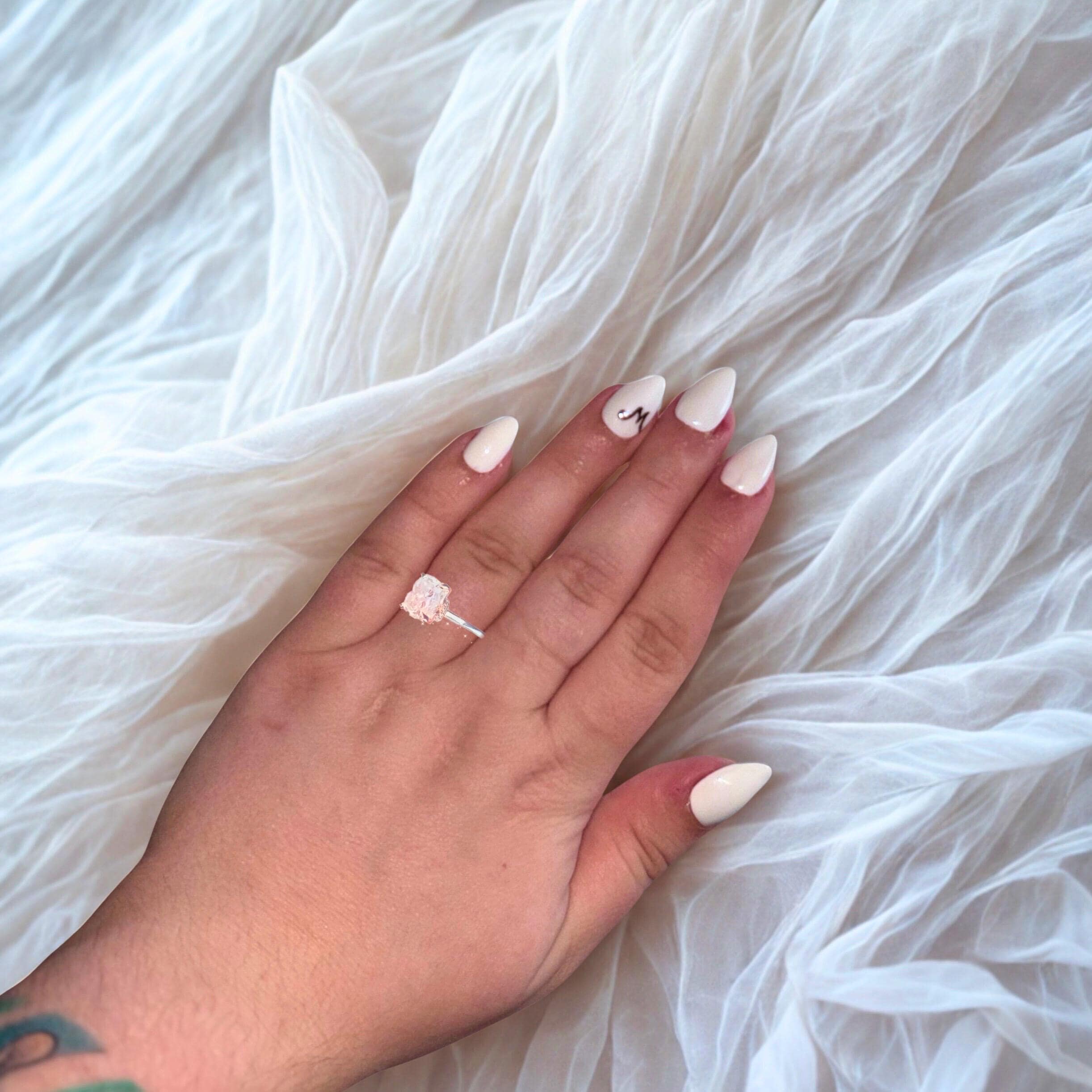 - Love Letters: a pure white nail design, with an initial on the left ring finger. Up to 3 letters can be put on nail. Color will automatically be black if not otherwise specified by buyer.